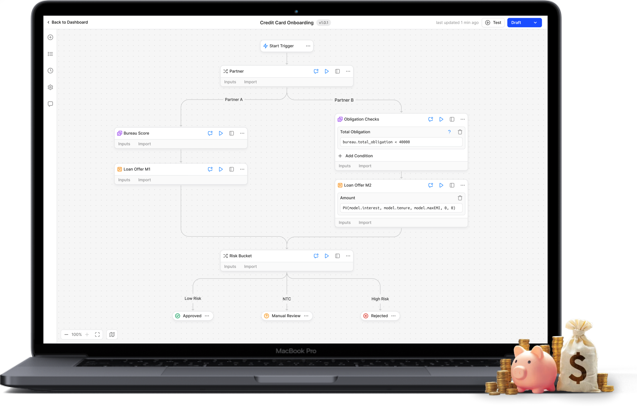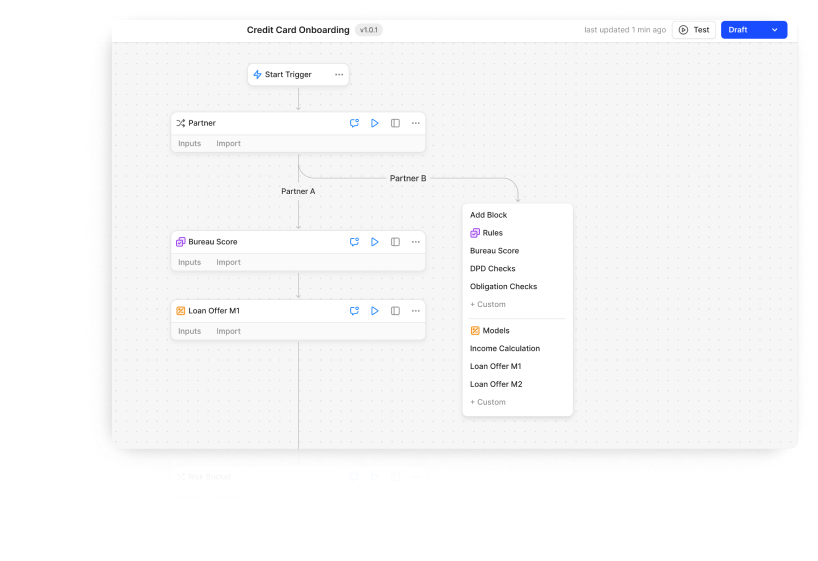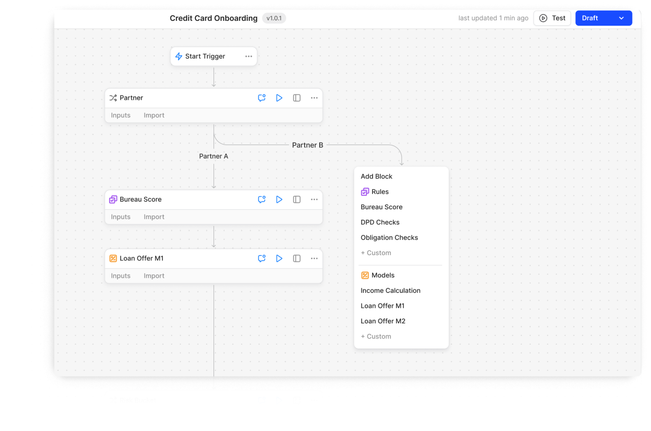 The no-code drag-and-drop workflow was counterintuitive for writing rules. Bankers were actually strong at logical thinking and simple code, so dragging blocks for every rule only slowed workflow creation.
