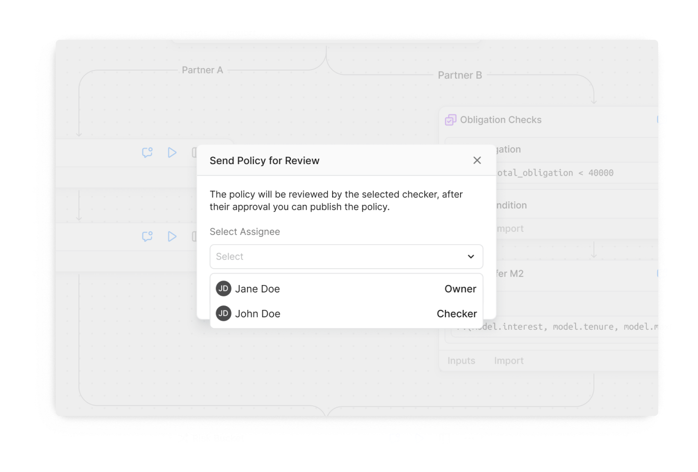 Makers can send policies directly to checkers for approval, ensuring a seamless review process.